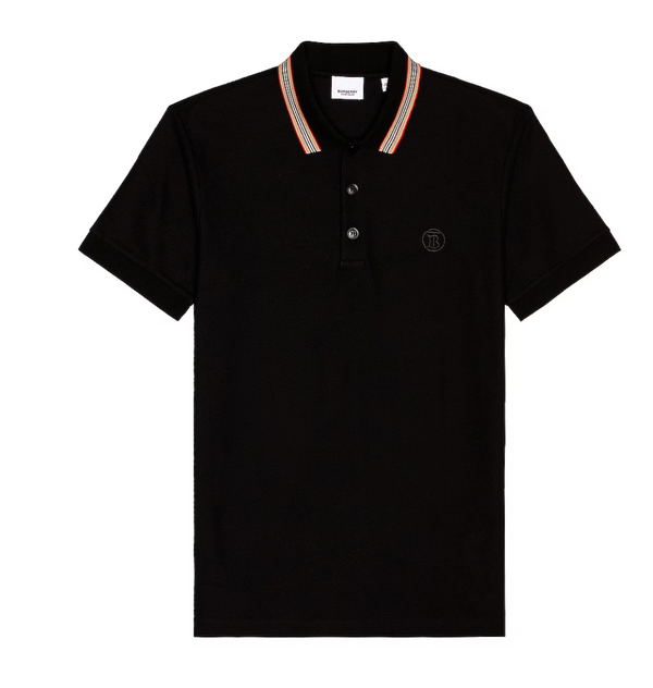 100% cottonMade in PortugalMachine washPartial front button closureTonal Burberry monogram embroidered at chestContrast striped collarPique fabricManufacturer Style No. 8053773