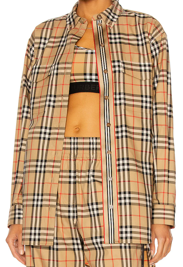 Self: 100% cottonTrim: 96% cotton, 4% elastanMade in VietnamMachine washPartial snap button front closuresLogo embroidery stitching detail at breastSide slits at hemTextured fabricManufacturer Style No. 8064887