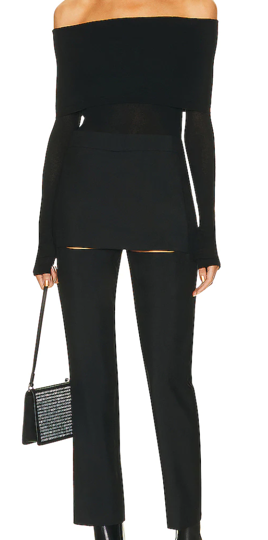 Self: 80% cotton, 20% polyamideCuff & Hem: 63% cotton, 32% polyamide, 5% elastaneCollar: 69% cotton, 28% polyamide, 3% elastane. Made in China. Dry clean only. Off-shoulder styling. Foldover neckline. Lightweight...